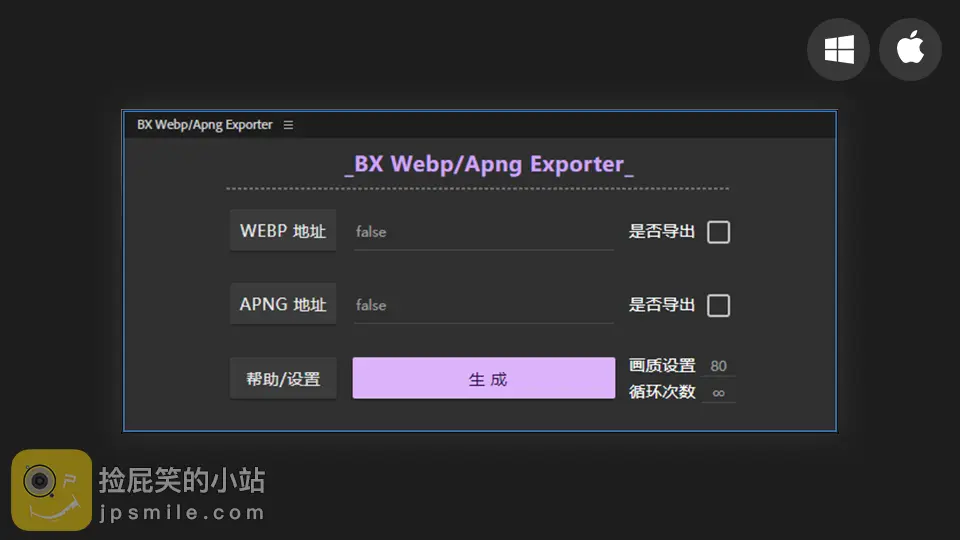 | BX Webp/Apng Exporter | v1.0.1 | Win&Mac | 百度网盘 | 2333 |