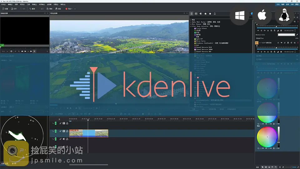Kdenlive 是 KDE Non-Linear Video Editor (KDE 非线性视频编辑工具) 的首字母缩写。它支持 GNU/Linux、Windows、macOS 和 BSD 等操作系统。